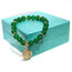 Green agate 8mm crystal stone bead bracelet with tree of life charm in luxury gift box with crystal meaning keepsake card. Our Tree of Life charm is a high quality silver electro plating over stainless steel.
