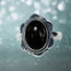 Oval cut Black Onyx cabochon boho flower design sterling silver ring ~ size 7,8,9