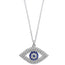 925 sterling silver necklace with celebrity style evil eye pendant, set with sapphire blue and clear cubic zirconias