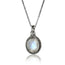 Exquisite rainbow moonstone oval pendant with flashes of stunning colour, set in 925 sterling silver